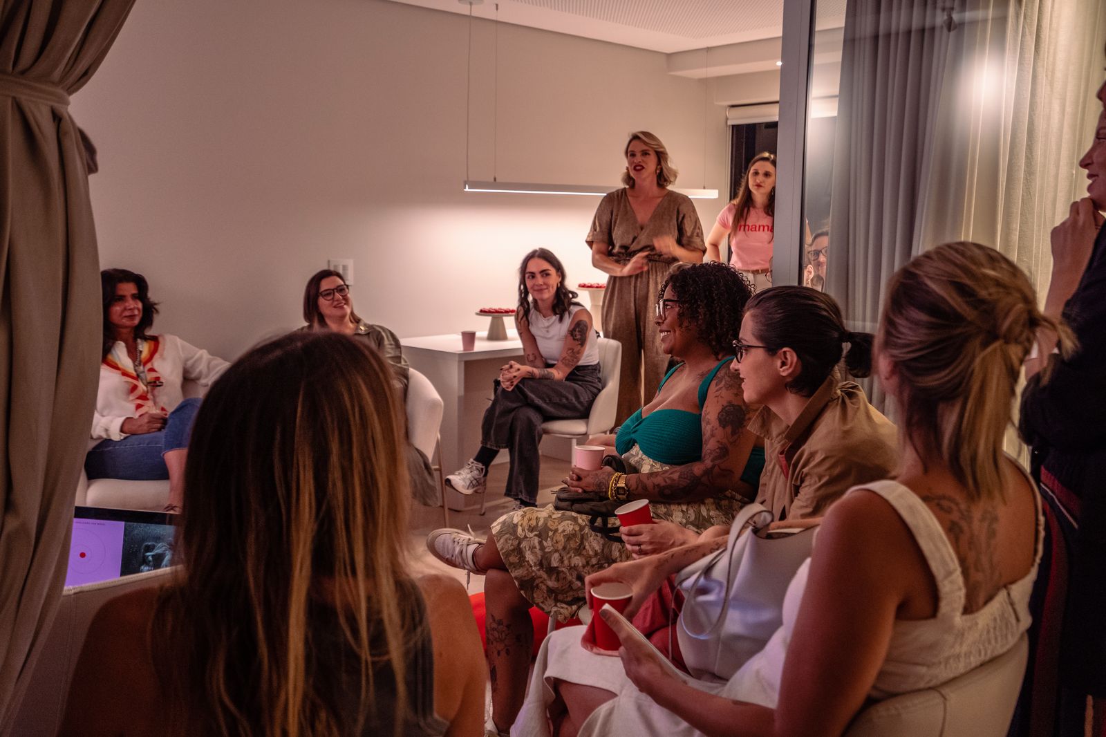 O encontro contou com mediação de Julia Presotto, cofundadora do MAMA, e reuniu mulheres e profissionais multidisciplinares: a fisioterapeuta Alessandra Tessaro, a psicóloga Bárbara Brea, a Dra. Luísa Comerlato Beck, especialista em Medicina Interna, a cientista social Carla Almeida e a mastologista Alessandra Borba. A roda de conversa reuniu mais de 20 mulheres de diferentes áreas, todas engajadas na sensibilização sobre o câncer de mama e no fortalecimento do autocuidado feminino.